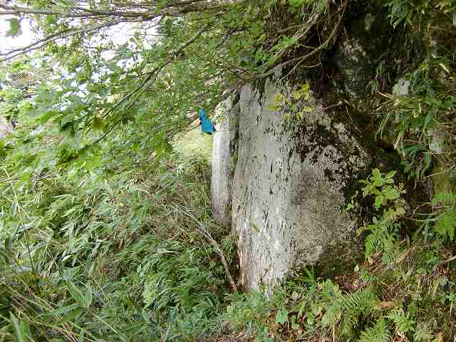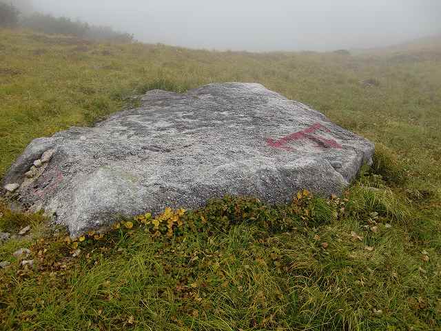 そうすると、道に迷います。頂上から着た道を戻るようにして、注意を払いこの石を見つけてください。分かりづらいです。