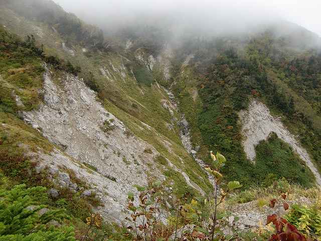 5月に大ブナクラ谷を登り詰め、この地点に上がってきたと思います。結構急斜面でした。紅葉もきれいです。
