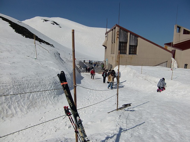 9:07 一の越到着 多くのスキーヤーは、雄山には登らず、黒四ダム方面に滑っていきました。来年チャレンジです。