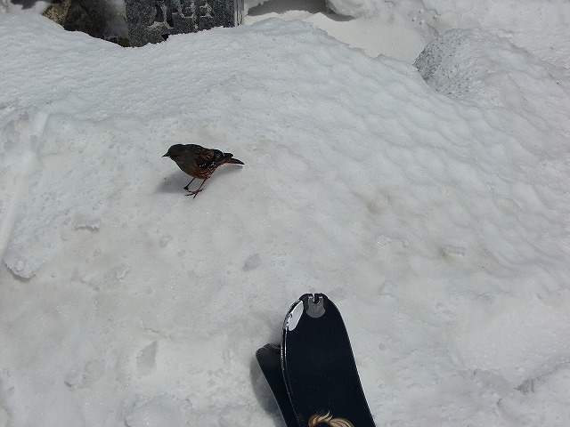 「イワヒバリ」がこの後の滑降の激励に来てくれました。「がんばれ」が聞こえたような気がします。