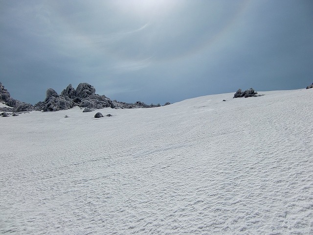 ただし、雄山からの山崎カール上部は、カリカリ状態で少々ビビリました。