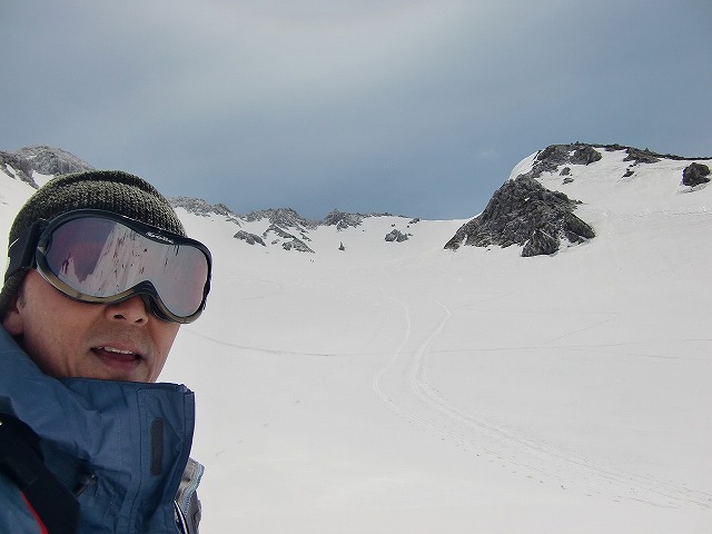 「山崎カール」ドロップイン クラストした硬い斜面に ビビリ気味のスタートとなりました。慎重に左右へ大きくターンしながらスピードをコントロールしていきました。