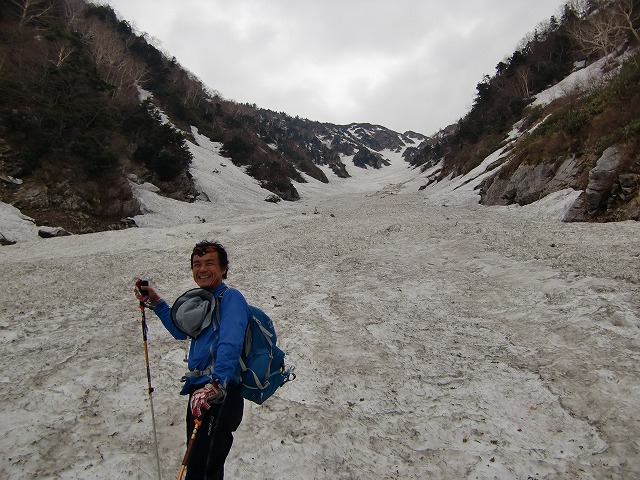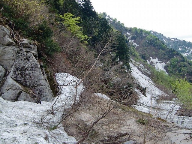 5時15分 最終堰堤を乗り越えます。今年は雪が多いので難なくクリアー