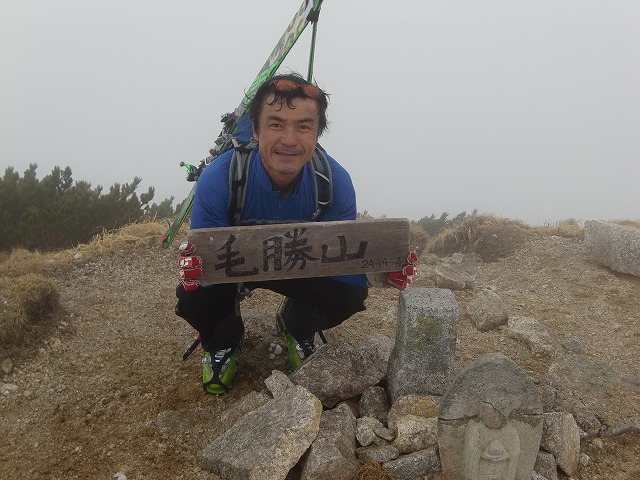 9時02分 霧の「毛勝山」 2414.4m山頂に到着です。 全く周りは見えません。残念。