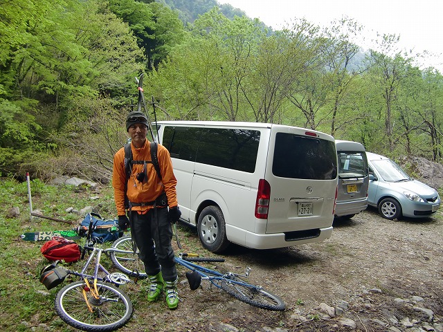 標高700m地点にある、「片貝山荘」を過ぎ、「阿部木谷」の出合いまで車で入ることができました。