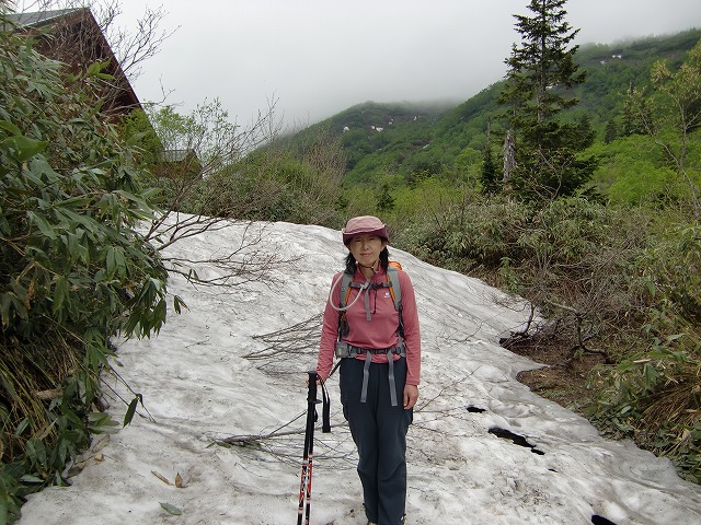 まだまだ残雪が残る夏道をゆっくり進みます。