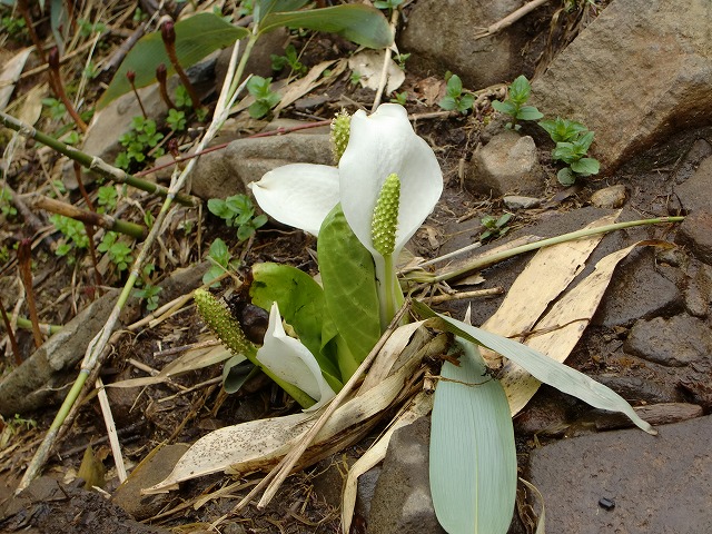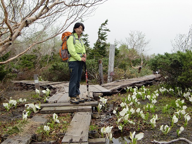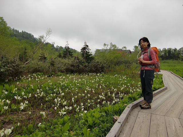 14時08分 第二ラウンド 自然園散策スタート ここでもミズバショウが群生しています。