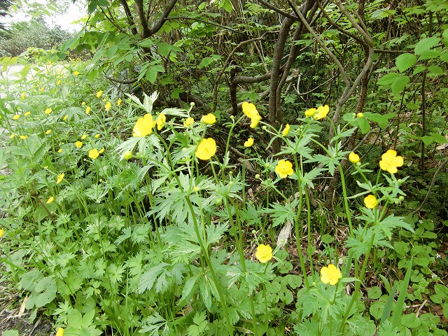 ロープウエイまでの道の横にあった ミヤマキンホウゲ