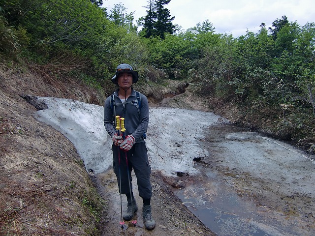 5時31分 猫又山 雪渓は5月に2人で滑った「猫又頂上」から「南東ルンゼの谷」楽しかったことを語り合いました。