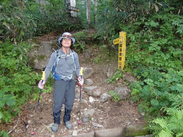 5:59 鑓温泉登山口通過。 今日も2人でがんがんとばします。
