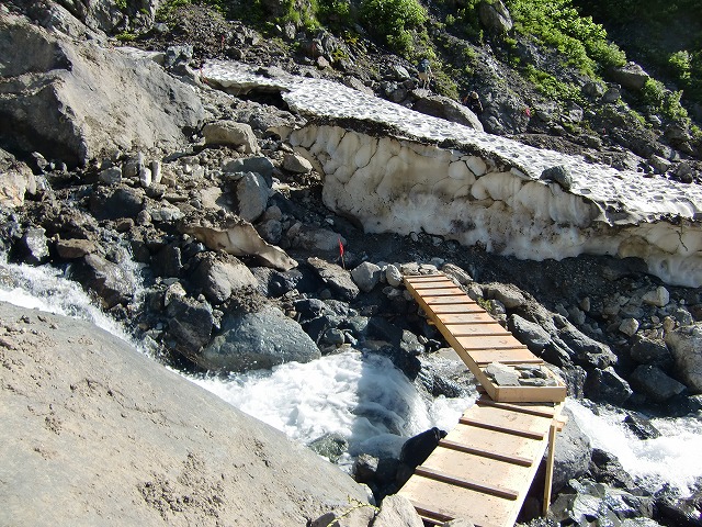 白馬岳の大雪渓もアリの行列ができる状態です。