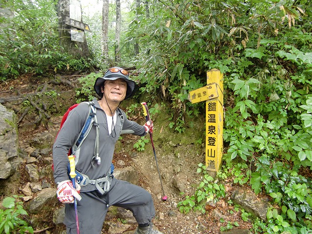15:02 鑓温泉登山口到着。がんがん下って来ました。