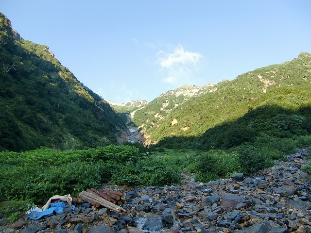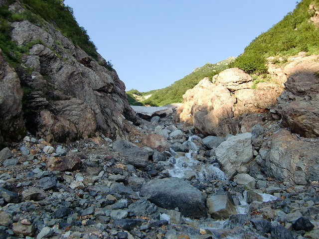 6:13 針ノ木沢取り付き地点通過(今は雪渓なし)
