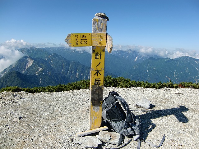 8時39分 針ノ木岳頂上(2821m)に到着です。ここまで約3時間30分(コースタイムは6時間コースです。)