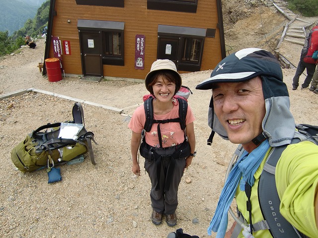 薬剤師さんと針ノ木小屋前で記念撮影。 この後 高山植物のお話を聞きながらの下山となりました。