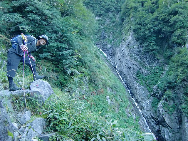 鎖を頼りにトラバスや登りの連続。気を引き締めていきます。