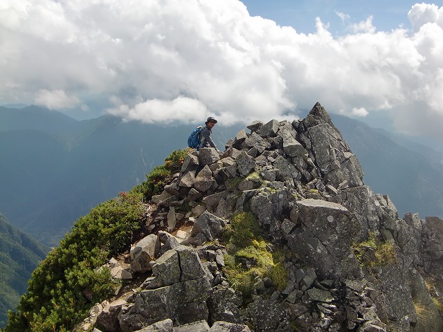 西穂高岳山頂だと思ったら違っていました。がっくりしつつも先を急ぎます。こんな小ピークが連続します。