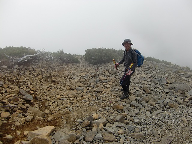 2909m山頂  「間ノ岳」を確認出来ないままここまで来てしまいました。いくつかのピークの一つだったのでしょう。