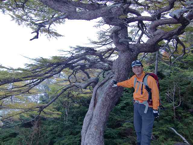 8:46 天狗の庭の入り口にある枝ぶりのいい樹。盆栽だとすごいことに。