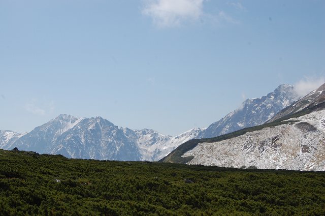 方向的には、白馬の頂上がわずかに見え、杓子岳・鑓ヶ岳が重なっているのか。よく分かりません。