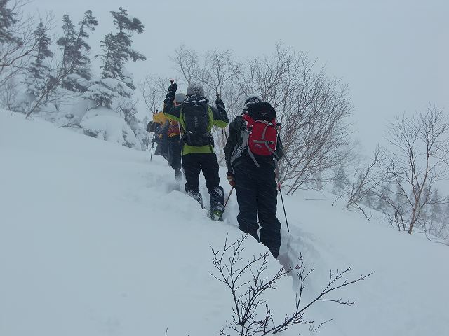 標高2100m地点。もう少しで天狗原ですが、寒さも増してきたので滑降開始です。