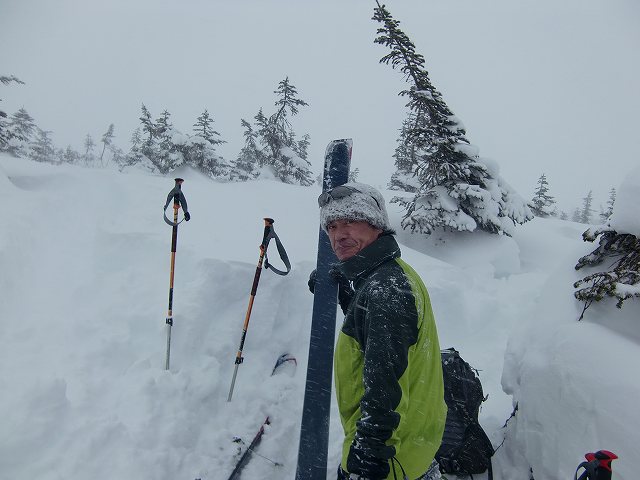 11:59 登り終了 約2100m地点 パウダー滑降開始