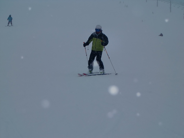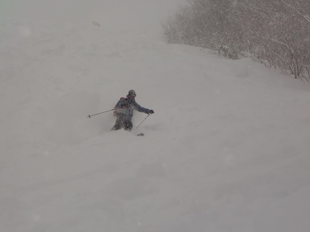 パウダーも、片山デモのレッスンが効果的でした。「伸ばし加重」によるスキー操作。