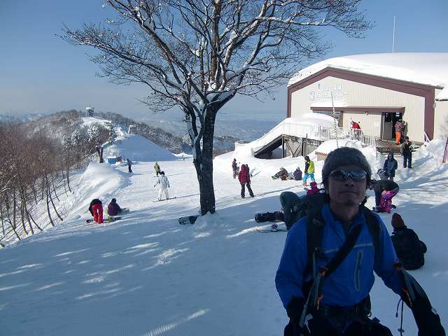 スキー場中間地点にあるレストラン前を通過。「天狗蔵」君のスピードについていくのがやっとです。