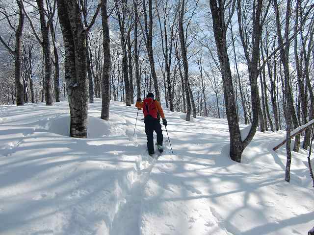 大品山は、標高1400m弱の平たいピークですが、バックカントリーフリークには、大変人気があるようです。