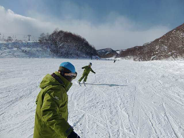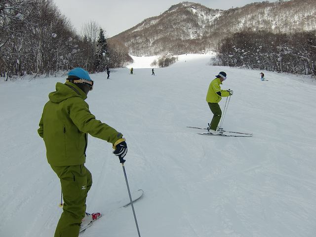 「外スキーの伸ばし加重がまだまあまい」そんなアドバイスが聞こえてきました。