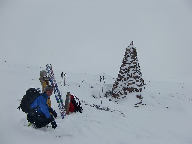 11:42 ケルン到着。標高2436Mとは思えない温かさです。風もありません。ケルンの周りに雪が積もってないということは、いかに日頃は強い風が吹いているかということを物語っています。