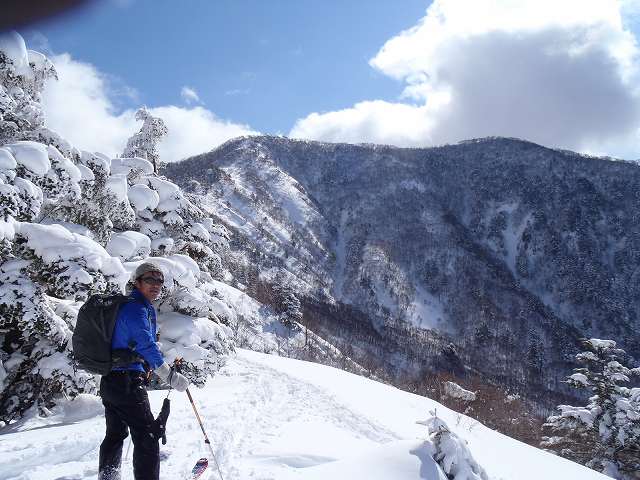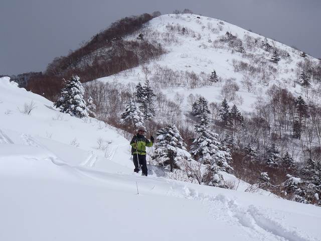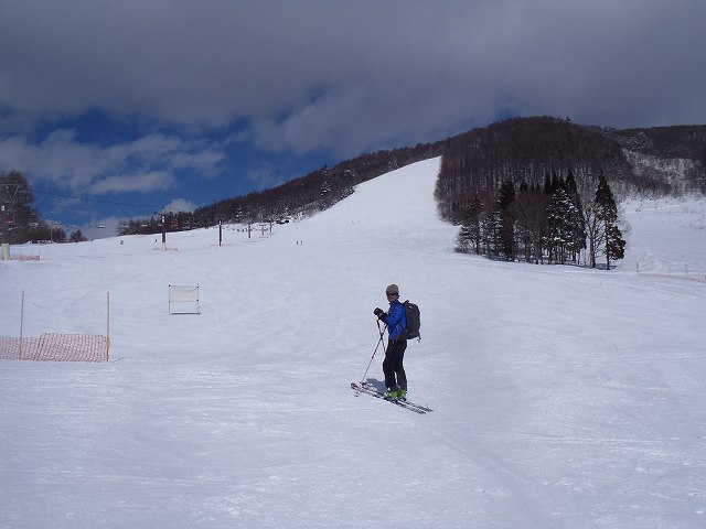 バックは、戸隠山 黙々とスキー場の中をハイク。 パトロールから「隅 おねがいします。」声をかけられます。