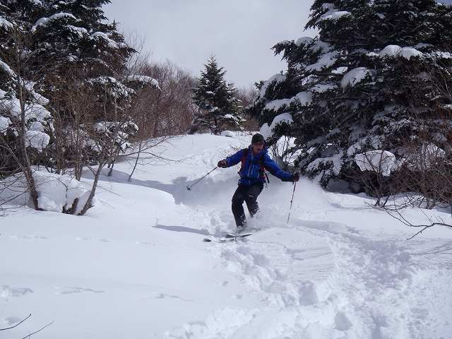 吸いこまれるように滑降開始し、激パウを満喫。