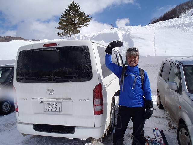 好天が予想され、2日連続のスキーに、筋肉痛が軽く残る老体に鞭を打ってのスタートです。