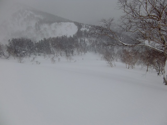 早稲田小屋に向かっての斜面。ここもいい感じです。「激パウ」でないのが残念。