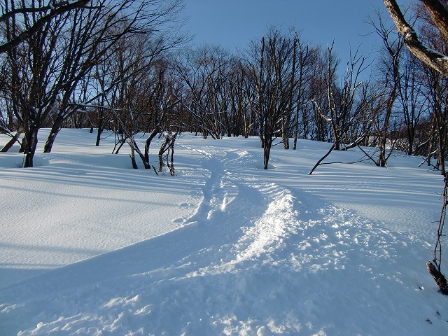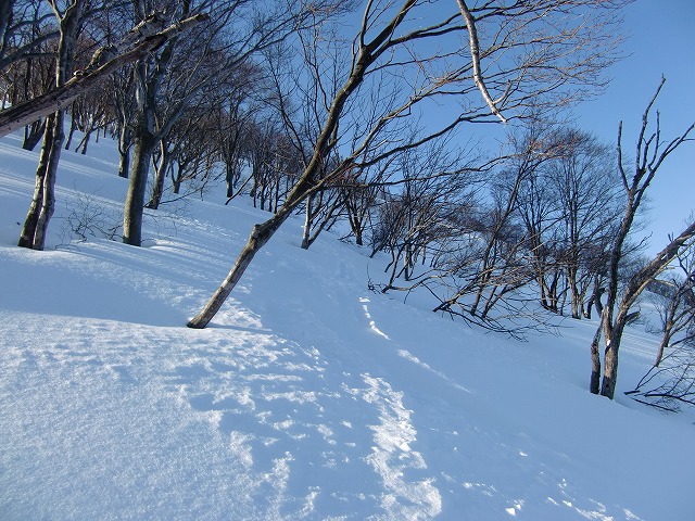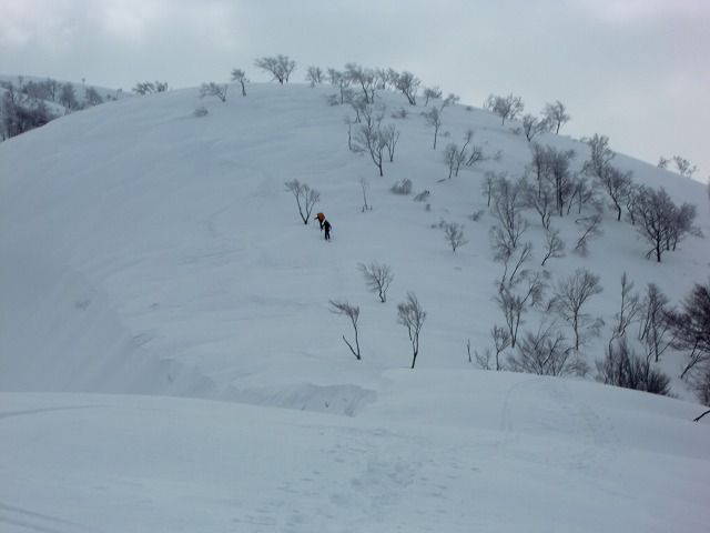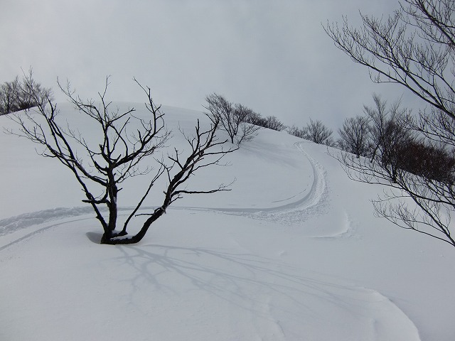 陶酔の斜面。あまりに気持ちよすぎて、尾根から外れてしまい、この後GPSを使うことに。