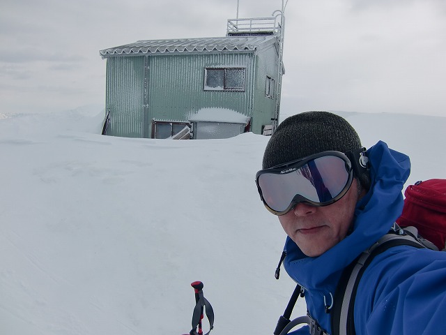 9:49 山頂小屋に到着です。どうにか好天がつづいてくれました。