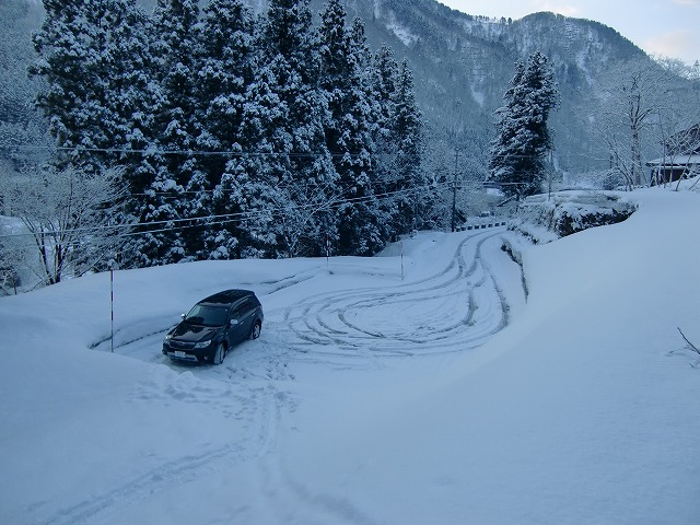 下で5cmぐらいでしょうか。上に行くにしたがって10cmの積雪に。