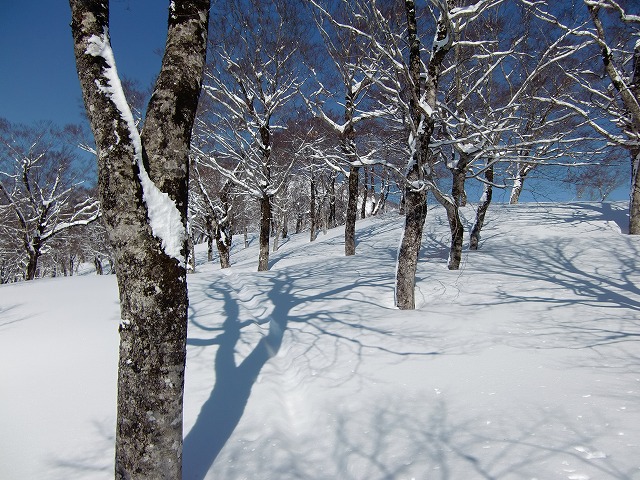 標高1220mまでの大斜面です。ここは、激パウの時期に来たいところです。最高の斜面です。(今日は、腐れ雪に)
