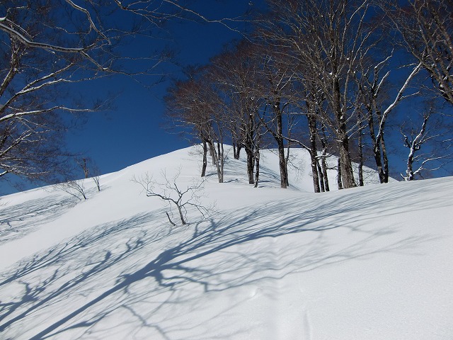 20cmぐらいのラッセルですが、スキーにまとわりつく感じで、なかなかハイクが進みません。