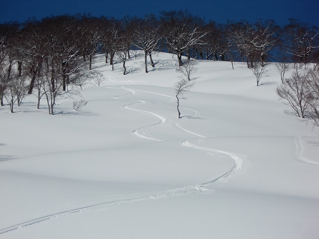 昨日は、新雪で気持ち良かったことでしょう。豪快なシュプールが残っています。