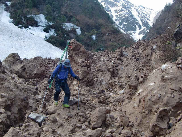 とりあえず上に行ってみますが、大明神沢の出合いまで巨大デブリが続いています。