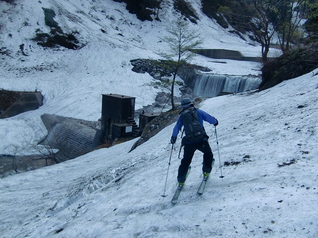 6:18 スキーで登行開始。いくつかの堰堤を越えていきます。