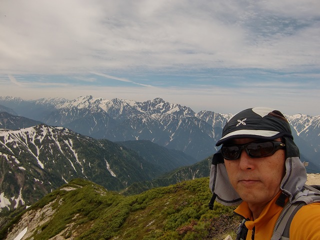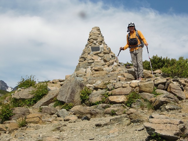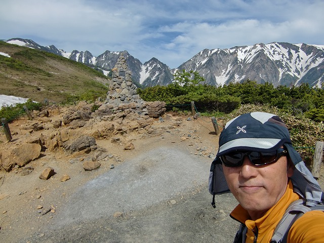 山頂に戻り昼食。その後山荘に移動します。剣岳をバックに記念撮影。