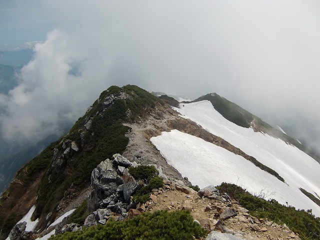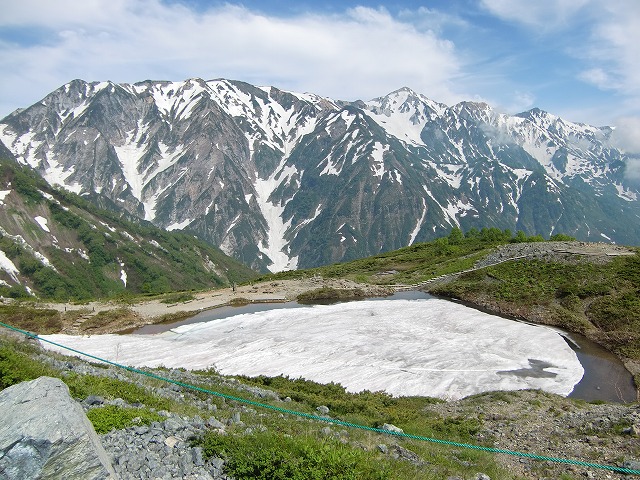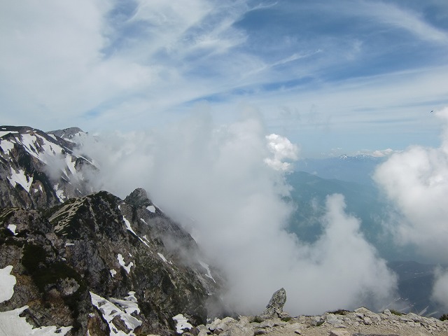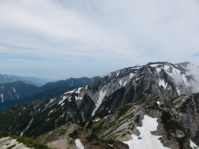 真ん中の三つの山が「猫又・鎌谷・毛勝山」左には、「駒ヶ岳」まで。