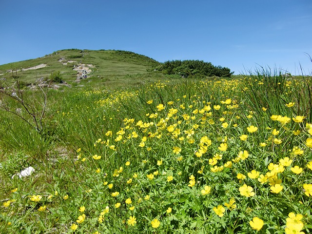 10:00 中俣乗越から登山道へハイク開始。一時間あまりで「北ノ俣岳」に到着。昼食をとります。