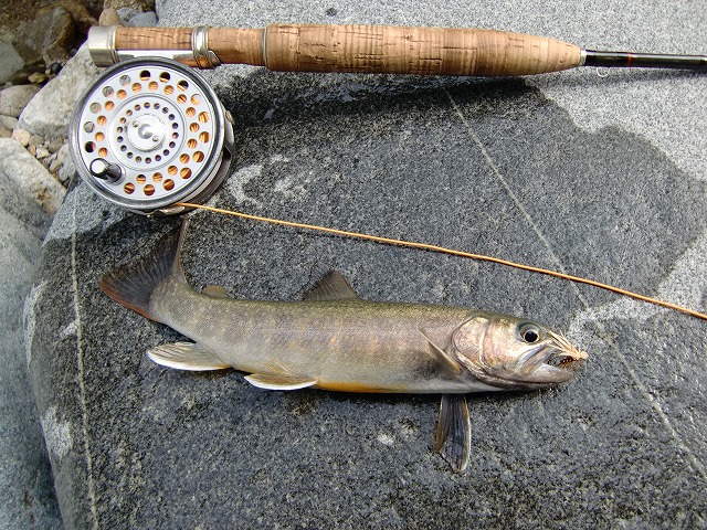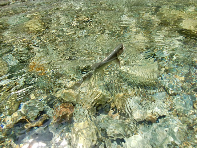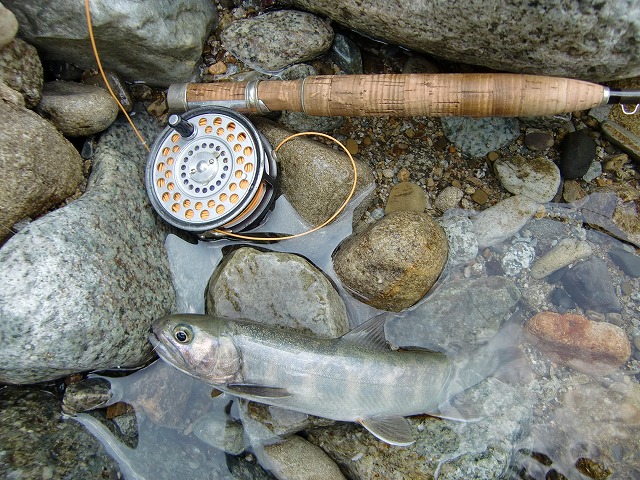 今回 フライは「カディス」タイプに反応が。「アント」にはつつきにきますが喰ってくれません。