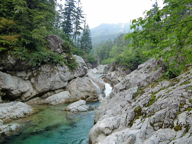 最大のゴルジュ帯。ここは高まきしかありません。(淵には尺岩魚が何匹も泳いでいます。)