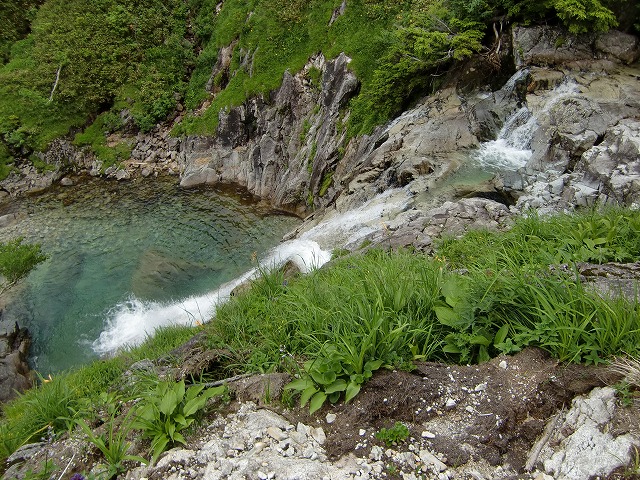 薬師沢には、手頃なプールが何カ所も現れます。そのプールごとに岩魚が釣れます。素晴らしい渓谷。