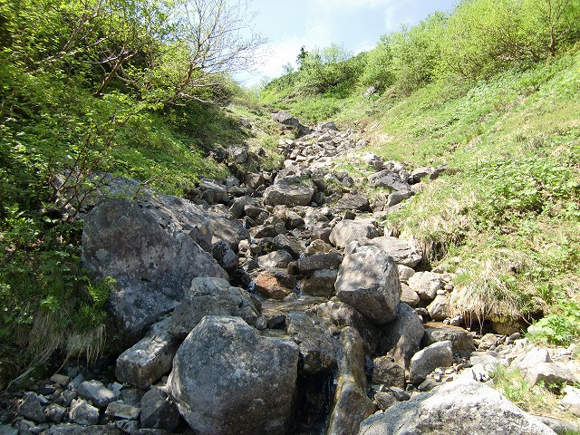 水の量もほんとに少なくなりました。稜線が近づいてきます。